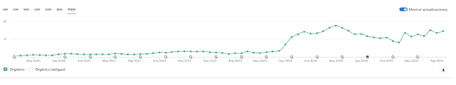 A su vez, las verticales de lavadoras, frigoríficos y televisores aportan estabilidad y una conversión elevada gracias a su carácter no estacional. El uso de datos estructurados y la integración con Merchant Center ha aumentado la presencia del dominio en Shopping, Imágenes y FAQs, multiplicando los puntos de contacto en Google. En conjunto, la estrategia ha posicionado a RepuestosLG como referente orgánico en el nicho, con tráfico constante y rentable proveniente de keywords de alta intención de com